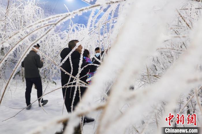 “五星霧凇”出現(xiàn)在室內(nèi),引游客駐留。 蒼雁 攝