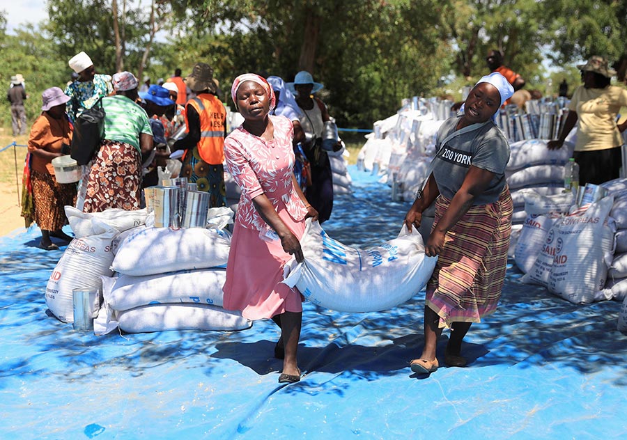 津巴布韋哈拉雷村民領(lǐng)取糧食援助