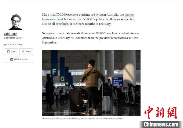 澳大利亞政府最新數(shù)據(jù)顯示,截至今年2月的三個(gè)月內(nèi),有超過5萬名申請(qǐng)簽證的留學(xué)生被拒。圖片來源于《澳大利亞金融評(píng)論》網(wǎng)站截圖。