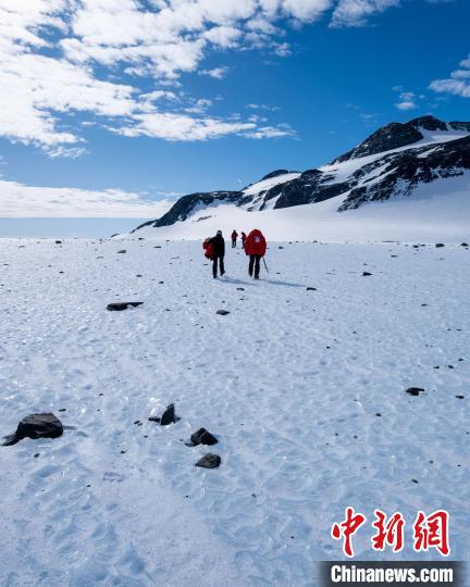 科考人員在南極藍色冰區(qū)進行冰層取樣。照片拍攝于智利安塔科研究所(INACH)2022年對南極洲埃爾斯沃斯山脈聯(lián)合冰川的實地考察任務(wù)期間(圖片來自智利圣地亞哥大學Jose Jorquera)。施普林格·自然/供圖