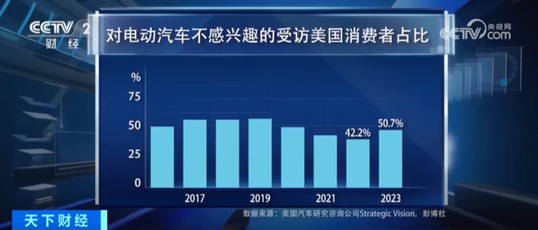 △一項針對25萬美國汽車消費者的調查顯示,2023年對于購買和租賃電動汽車不感興趣的消費者占比已經超過了一半,達到了50.7%。