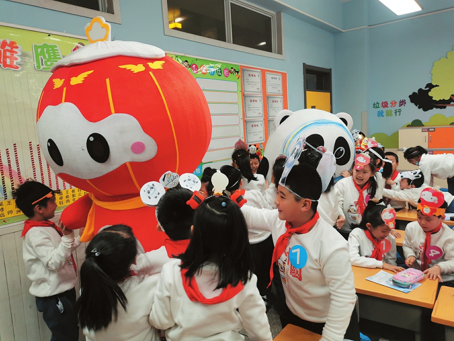 1月4日,太原市新建路小學(xué)內(nèi),冬奧會吉祥物“冰墩墩”“雪容融”正在與孩子們互動。據(jù)了解,當(dāng)日該校開啟“樂考迎冬奧 一起向未來”一二年級樂考活動。通過“冬奧”禮儀、“冬奧”吉祥物我來做等項目測評內(nèi)容,采用游園走班式樂考,讓孩子們在樂考中走近“冬奧會”、了解“冬奧會”。(記者阮洋攝)