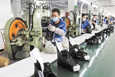 在張家口高新區(qū)冰雪運動裝備產業(yè)園,工人在一家冰球鞋生產企業(yè)車間工作。新華社發(fā)