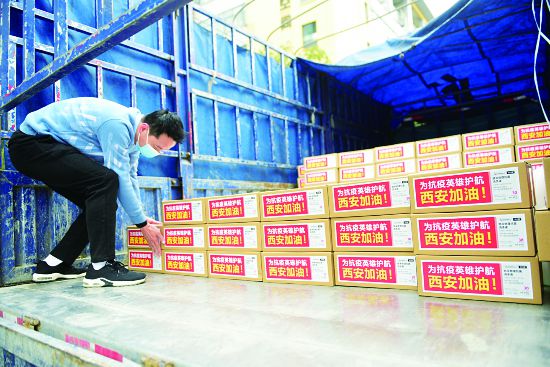 1月10日中午,一輛載著防疫物資的卡車從浙江義烏科創(chuàng)園出發(fā),駛向西安。車上共有118桶公共室內(nèi)外環(huán)境長(zhǎng)效納米物理抗菌消殺液,還有專為一線抗疫人員準(zhǔn)備的106箱抗菌防護(hù)加強(qiáng)噴霧。據(jù)悉,前段時(shí)間,西安疫情防控形勢(shì)嚴(yán)峻,該捐贈(zèng)企業(yè)聯(lián)系陜西省總工會(huì)、團(tuán)省委及西安市幾家重點(diǎn)醫(yī)院進(jìn)行捐贈(zèng),希望為抗疫貢獻(xiàn)一份力量。(錢旭升)