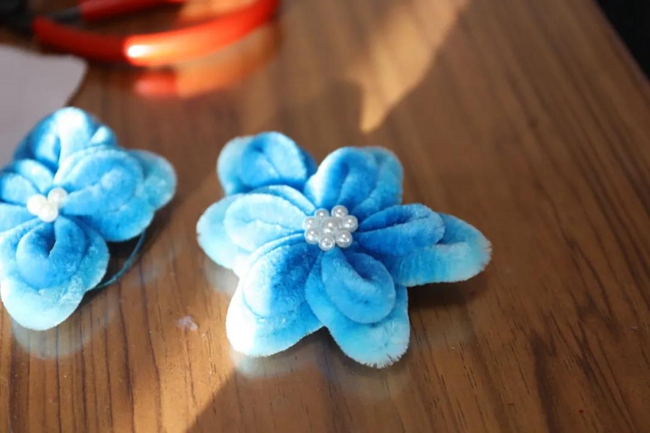 為傳承和發(fā)揚(yáng)傳統(tǒng)技藝,工作室通過為影視作品設(shè)計(jì)制作絨花,與北京不少單位和社區(qū)合作,設(shè)置絨花制作體驗(yàn)項(xiàng)目、開展培訓(xùn)等多種方式,吸引市民認(rèn)識(shí)絨花,傳承學(xué)習(xí)絨花制作技藝。目前,懷柔區(qū)楊宋鎮(zhèn)共有40多名村民參加定期培訓(xùn),5名村民培訓(xùn)結(jié)束后繼續(xù)留在工作室工作,并參與了冬奧會(huì)絨花制作工作。