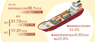 “2021年是黨和國家歷史上具有里程碑意義的一年。面對全球新冠肺炎疫情帶來的嚴重沖擊,我國外貿進出口依然展現(xiàn)了強勁的韌性,在困難多、挑戰(zhàn)大的情況下交出了一份亮眼的成績單。”李魁文說。