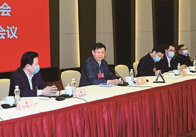 蘇州代表團氣氛熱烈,曹路寶、吳慶文、李亞平、黃欽、徐惠民、劉慶、范力、沈彬、周榮等代表先后發(fā)言。大家一致認為,政府工作報告堅持以習近平新時代中國特色社會主義思想為指導(dǎo),全面貫徹黨的十九大和十九屆歷次全會精神,認真落實習近平總書記對江蘇工作重要指示要求,緊緊圍繞省第十四次黨代會部署,體現(xiàn)了捍衛(wèi)“兩個確立”的高度自覺、服務(wù)全國大局的強烈擔當、推動高質(zhì)量發(fā)展的戰(zhàn)略定力、人民至上的深厚情懷,是一個貫徹中央精神、體現(xiàn)省委要求、符合江蘇實際、回應(yīng)人民期待的好報告。大家還圍繞打造創(chuàng)新生態(tài)、發(fā)展數(shù)字經(jīng)濟、產(chǎn)業(yè)集群升級、助推長三角一體化發(fā)展、促進共同富裕、補齊民生短板等提出了意見建議。許昆林邊聽邊記,與大家不時互動交流。他說,過去一年,全省上下在以習近平同志為核心的黨中央堅強領(lǐng)導(dǎo)下,高水平全面建成小康社會,勝利完成省十三屆人大四次會議確定的主要目標任務(wù),在風浪中穩(wěn)住了發(fā)展大局、實現(xiàn)了良好開局,“強富美高”新江蘇現(xiàn)代化建設(shè)邁出堅實步伐。大家提出的意見建議,我們將逐項梳理、深入研究、充分吸納,進一步改進政府工作。