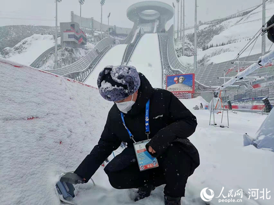 國家跳臺(tái)滑雪中心電力保障團(tuán)隊(duì)在賽事后檢查用電設(shè)備。 韓寶喜攝