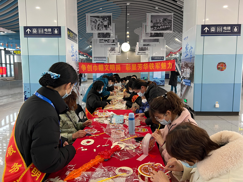鬧元宵、扎虎燈、猜燈謎……節(jié)日里的杭海城際鐵路各車(chē)站熱鬧非凡。在張燈結(jié)彩的海寧海昌路站,工作人員熱情邀請(qǐng)乘客參加猜燈謎活動(dòng)?;顒?dòng)中,乘客們有的凝眉思考,有的積極討論,歡歡喜喜猜著燈謎,為節(jié)日里增添了一份歡樂(lè)和喜悅。海寧鹽官站又是另一番歡樂(lè)的場(chǎng)景,工作人員親自動(dòng)手,制作出一盞盞漂亮的虎燈,乘客們紛紛圍攏過(guò)來(lái)駐足觀看,希望在新的一年里贏得“好兆頭”,現(xiàn)場(chǎng)一片其樂(lè)融融,歡聲笑語(yǔ)。