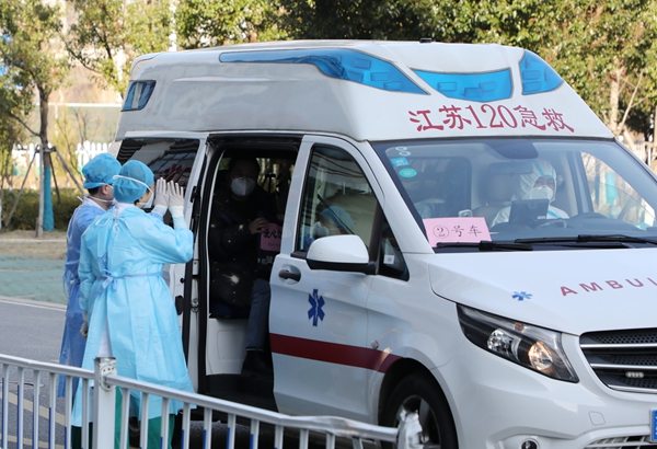 4名出院患者被轉(zhuǎn)運至蘇州市太湖邊新冠肺炎康復(fù)定點醫(yī)院繼續(xù)隔離。蘇州市委宣傳部供圖