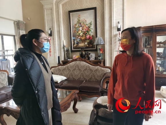 志愿者錢(qián)喜紅(右)為社區(qū)工作人員騰出房間休息。人民網(wǎng)記者王繼亮攝