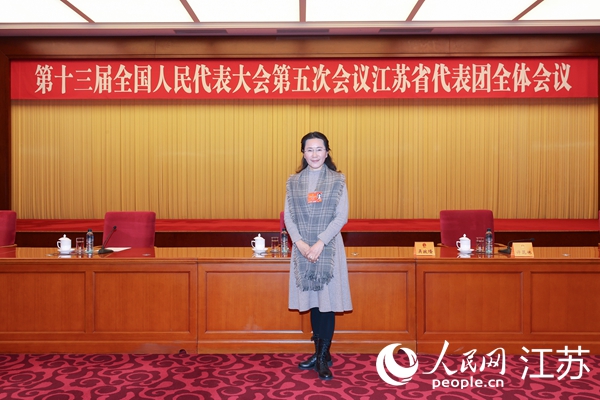 全國(guó)人大代表、南京浦口區(qū)霞光幼兒園園長(zhǎng)蔣宇霞。曹偉攝