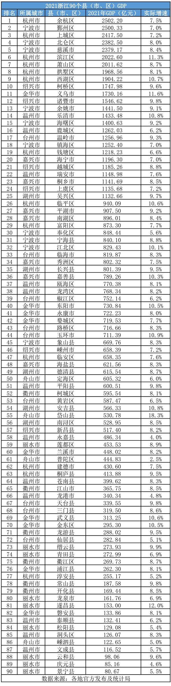 2021年,浙江7個GDP超2000億元的縣(市、區(qū))被杭甬雙城包攬,分別占據(jù)4席、3席。