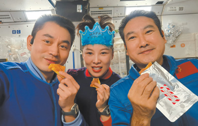 執(zhí)行迄今時間最長一次太空飛行,神舟十三號航天員趕上了第一次在太空跨年,第一次在空間站過春節(jié)。在地面團隊的精心保障下,航天員們除夕夜為人們送上來自太空的新年祝福,在空間站度過了年味十足、充實精彩的虎年春節(jié)。從太空出艙、“天宮課堂”開講,到手控遙操作完成貨運飛船與空間站組合體交會對接試驗,從中國女航天員首次太空漫步,到3名航天員太空飛行累計超100天,太空“出差”期間,航天員們開展了一系列空間科學實驗和技術試驗,刷新了一個又一個中國航天紀錄,為中國空間站正式建成打下堅實基礎。