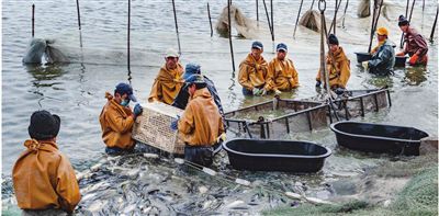 北塘寧車沽萬(wàn)畝魚(yú)塘出魚(yú) 圖片由北塘街道提供