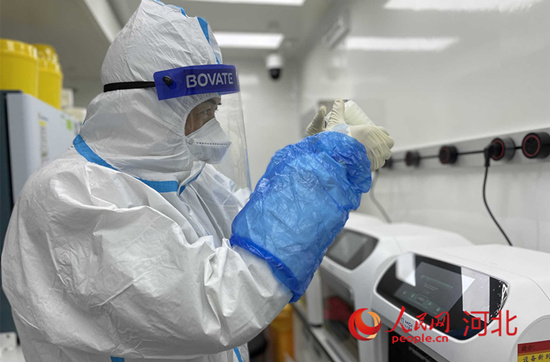 “在華大技術人員的協(xié)助下,來自河北各地支援的醫(yī)務人員已完成對生物安全知識、儀器設備使用注意事項等方面的工作梳理和培訓。實驗人員在輪班的情況下,保證實驗室能夠24小時運轉以達到相應的日檢測通量?!蓖踉品颊f。(林福盛、吳源生)