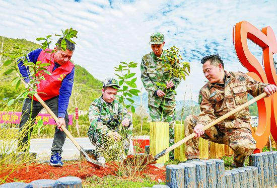 近日,在即將奔赴軍營前夕,金華婺城區(qū)莘畈鄉(xiāng)兩名應(yīng)征入伍的青年,積極參加鄉(xiāng)里組織的植樹活動(dòng),將一棵棵樹苗種進(jìn)土壤,也在心中種下保衛(wèi)祖國、報(bào)效祖國的種子。(吳潮宏)