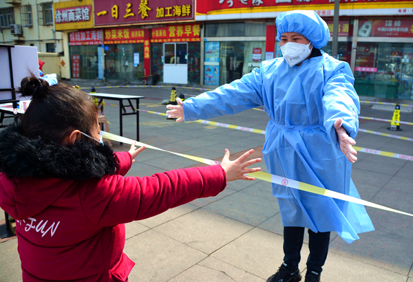 3月4日晚,連云港市海州區(qū)發(fā)現(xiàn)1例陽性人員,港城疫情防控阻擊戰(zhàn)就此打響。5日早上6點(diǎn)半,孫麗群接到參與核酸檢測服務(wù)工作的通知,第一時(shí)間將讀小學(xué)的女兒送到姐姐家照顧,轉(zhuǎn)頭便投入到疫情防控工作中去。相隔十幾天不見,女兒在做核酸檢測時(shí)見到了媽媽,思念的淚水瞬間“決堤”。