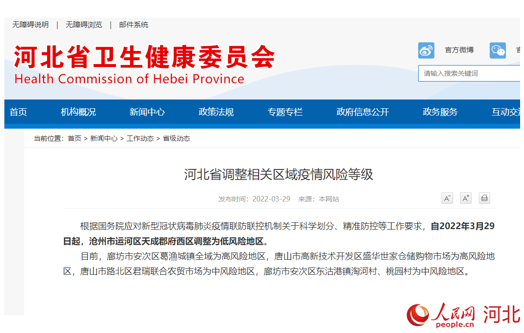 河北省調(diào)整相關(guān)區(qū)域疫情風(fēng)險(xiǎn)等級(jí)