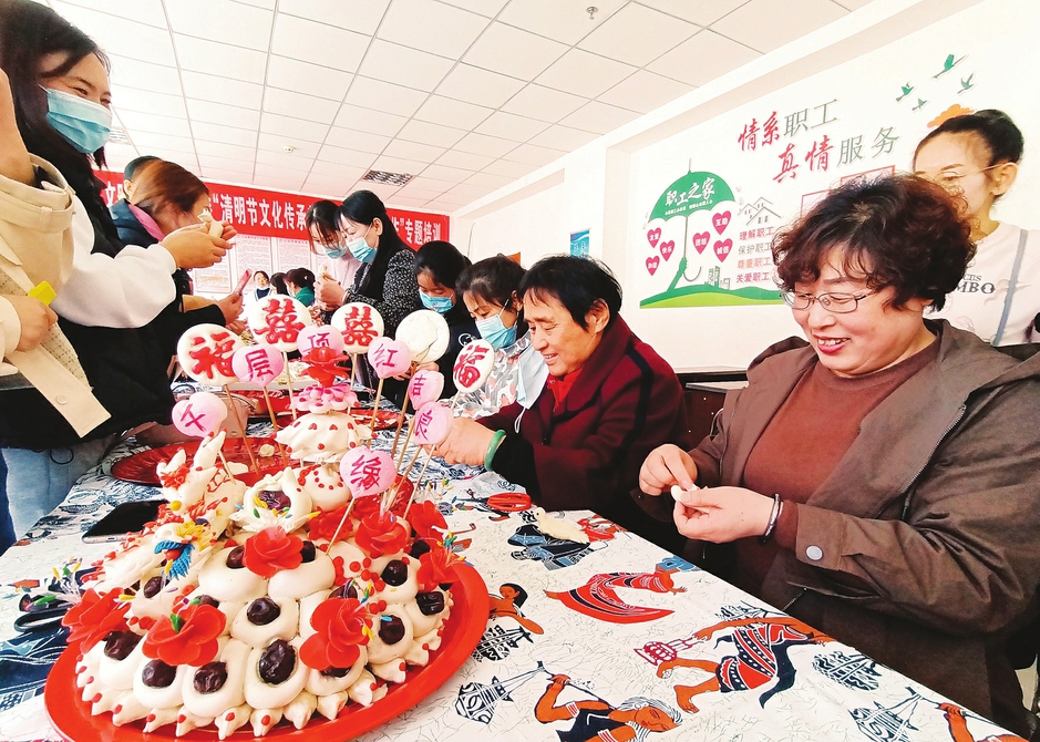 三月二十七日,石樓縣新時代文明實踐中心開展“清明節(jié)文化傳承教育和傳統(tǒng)美食制作”專題培訓,邀請“面花”手藝人現(xiàn)場教授捏面燕,倡導移風易俗、文明祭祀。(李晶晶攝)