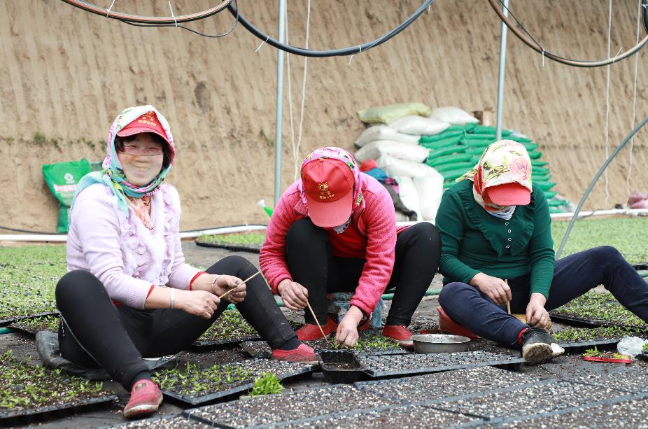 “這是剛長成的辣椒苗,我們抓緊時(shí)間把它們移植到育苗盤里,一坑兒一苗兒。”正在熟練做工的56歲村民薛愛說,“節(jié)令不等人,從3月初開始張羅營養(yǎng)土配比,然后播種、澆水、移植和管護(hù),到5月中旬進(jìn)入銷售高峰,我們就一直在這里忙?!?/p>