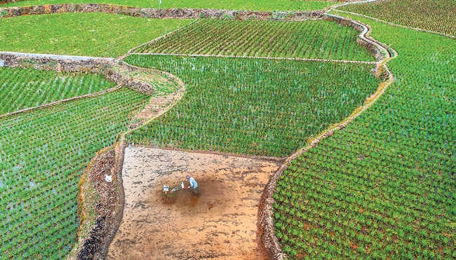 日前,麗水景寧縣大漈鄉(xiāng)大漈村,村民搶抓農(nóng)時,在茭白田里翻耕、疏苗、插苗,開始忙碌著2022年的茭白種植。大漈鄉(xiāng)海拔1030米,近年來,當(dāng)?shù)赝ㄟ^引進技術(shù),在低產(chǎn)低效的山區(qū)冷水梯田里發(fā)展綠色生態(tài)茭白產(chǎn)業(yè),實現(xiàn)農(nóng)業(yè)提質(zhì)增效,農(nóng)民增產(chǎn)增收,并成為浙江反季節(jié)山區(qū)冷水茭白的重點產(chǎn)區(qū)。(陳煒、李肅人)