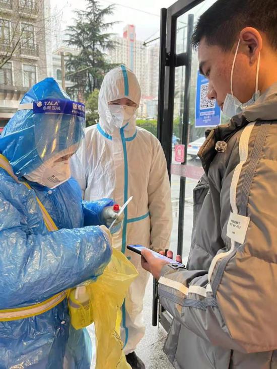 街邊小店店員需要經(jīng)常做核酸。 長(zhǎng)寧區(qū)供圖