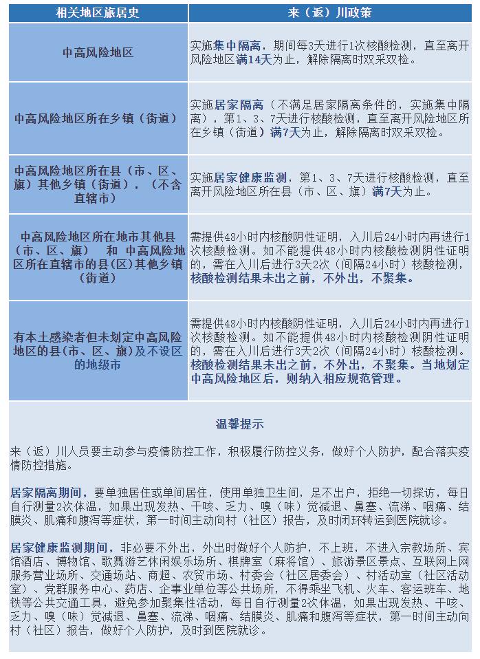 其他地區(qū)來(返)川政策小貼士