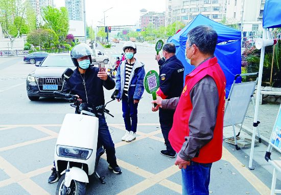4月5日,在金華婺城區(qū)城東街道通園路社區(qū)各暖心服務(wù)點(diǎn)、小區(qū)出入口,管理人員落實測溫、亮碼、戴口罩的要求,“場所碼”逢進(jìn)必掃,社區(qū)自行設(shè)計了便攜式“掃碼桿”。使用“掃碼桿”后,過往車輛和行人掃碼的效率明顯提高,縮短了通過時間,拉開了志愿者和來往車輛及人員的距離,避免人員接觸。(時寬兵)