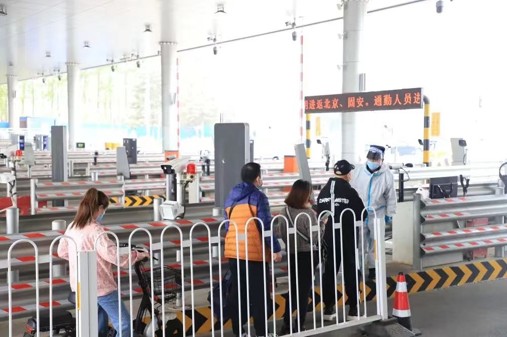“根據(jù)疫情防控工作,4月11日零時起,固安縣通勤人員恢復(fù)進(jìn)返北京、固安。目前,堅持非通勤人員非必要不進(jìn)京,如因重大疾病等極特殊原因確需進(jìn)京的人員,需出示相應(yīng)證明后進(jìn)京,并嚴(yán)格執(zhí)行北京市疫情防控政策。”固安縣辛立村公安檢查站站長徐立說。