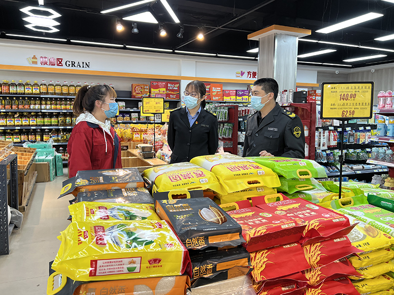 石樓縣市場監(jiān)督管理局執(zhí)法人員對超市進行監(jiān)督檢查。石樓縣融媒體中心供圖