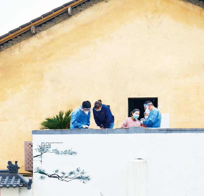 4月19日下午,在金華婺城區(qū)青年路上,兩名志愿者開展上門排查工作。據(jù)了解,從4月19日開始,金華市區(qū)全面開展“清村掃樓”工作,眾多志愿者在抗疫一線奔波,他們與社區(qū)形成合力,高效協(xié)同,以快制快不松勁,努力確保核酸檢測等后續(xù)工作不漏一人、不留風險,摸清居民底數(shù),為助力抗疫提供扎實的數(shù)據(jù)支撐。廣大居民面對上門調查,積極主動配合,為全民抗疫貢獻自己的一份力量。(黃澤振)