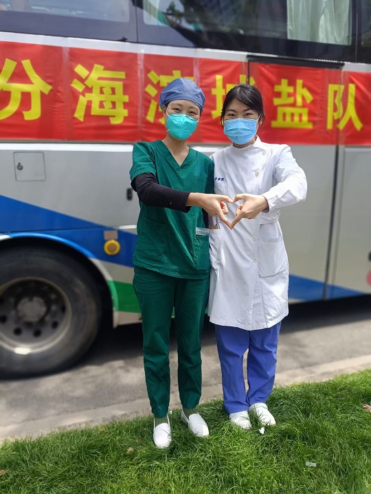 梁慧和姜蕾蕾一樣,在江蘇省鹽城市濱海縣第一人民醫(yī)院腦外科任職護(hù)士。作為一名擁有8年黨齡的老黨員,在得知上海需要支援時(shí),她毫不猶豫地在單位報(bào)名加入了江蘇省援滬醫(yī)療隊(duì)鹽城濱海分隊(duì)。“我知道表妹已在一線日夜奮戰(zhàn)了一個(gè)多月了,這一次,我們姐妹倆也算是一起并肩作戰(zhàn)了”,梁慧笑著說(shuō)道。