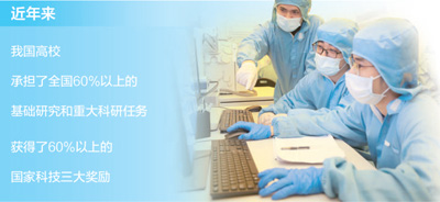 數據顯示,近年來,我國高校承擔了全國60%以上的基礎研究和重大科研任務,獲得了60%以上的國家科技三大獎勵,為實現“兩個一百年”奮斗目標貢獻了重要的高校力量。
