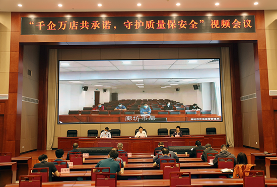 “千企萬店共承諾 守護質(zhì)量保安全”視頻會議現(xiàn)場。 河北省市場監(jiān)管局供圖