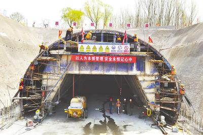 國道G102線市區(qū)段改建工程角山隧道明洞襯砌施工現(xiàn)場,正在緊張施工。 本組照片由河北日?qǐng)?bào)記者孫也達(dá)攝