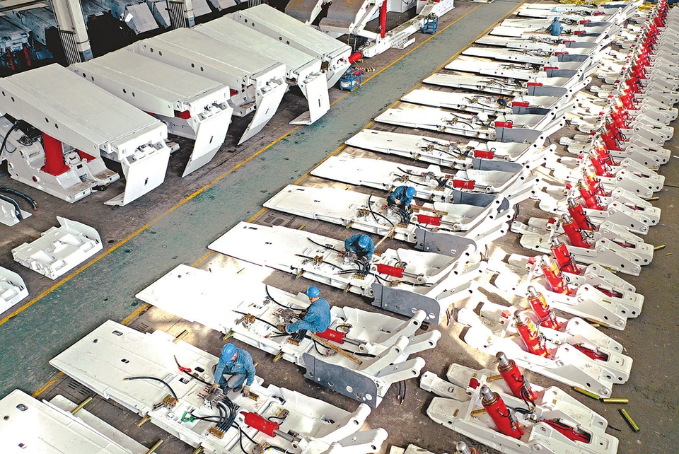 4月24日,在晉能控股裝備制造集團(tuán)華越公司生產(chǎn)車間,該公司承接的四川樂山和邦集團(tuán)的液壓支架產(chǎn)品正在緊張組裝。今年以來,該公司大力開拓省外市場(chǎng)、做優(yōu)做強(qiáng),提升產(chǎn)品市場(chǎng)影響力,全方位推動(dòng)企業(yè)高質(zhì)量發(fā)展。(記者劉通攝)