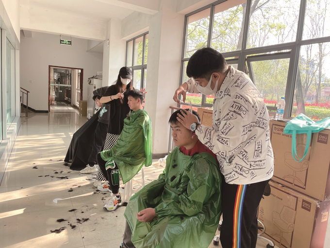 3月29日以來,江蘇農(nóng)林職業(yè)技術(shù)學(xué)院的3名學(xué)生組成“理發(fā)天團”,累計為校內(nèi)200多名師生解決了“頭”等大事。(學(xué)生供圖)
