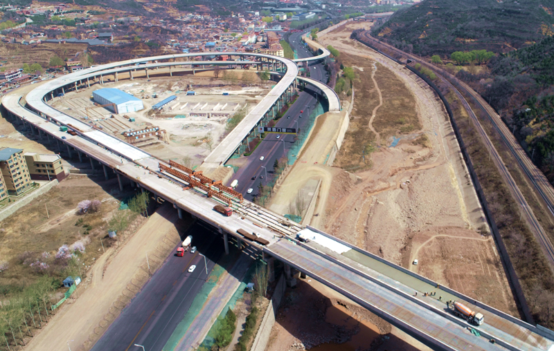 陽泉市在嚴防疫情的同時,全力推進重大項目建設(shè)。在國道307、207線陽泉市繞城改線工程施工現(xiàn)場,740余名建設(shè)者正在緊張施工中,建設(shè)進度已完成85%。圖為4月17日辛興互通項目施工現(xiàn)場。劉勝 攝