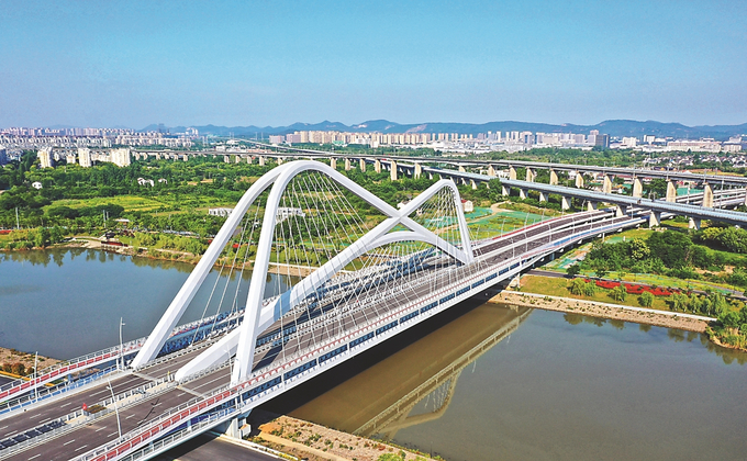 外觀猶如巨型“蝴蝶結”的南京秦淮灣大橋,目前已進入竣工驗收階段,預計將于9月正式投用。大橋連接南京繞城高速和南部新城,為市民前往南部新城提供更便捷的路線。 通訊員 李琦 本報記者 趙亞玲 攝