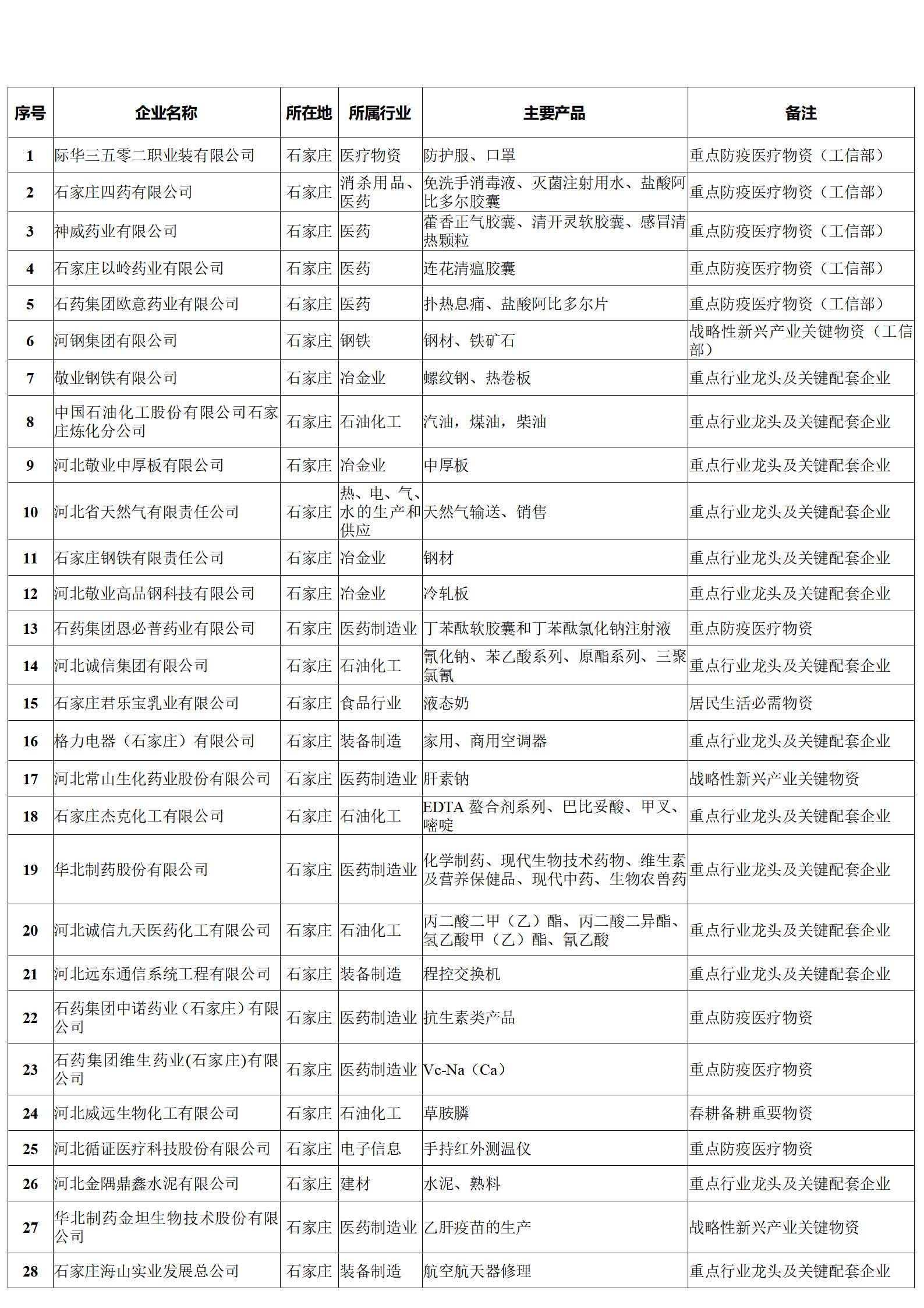 河北省重點產(chǎn)業(yè)鏈供應(yīng)鏈“白名單”企業(yè)