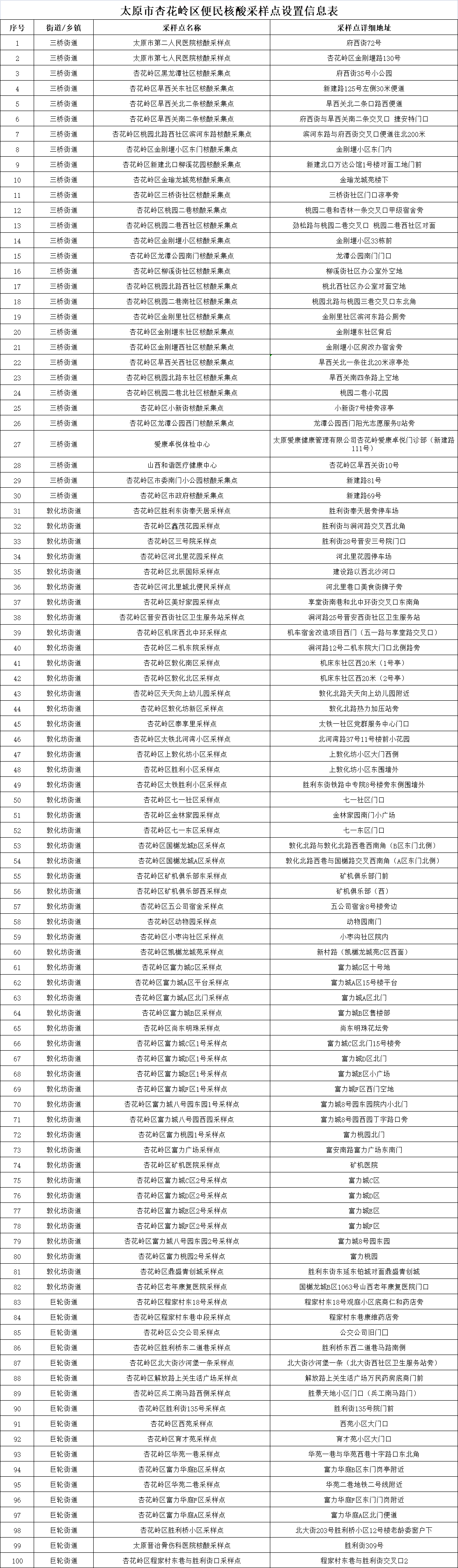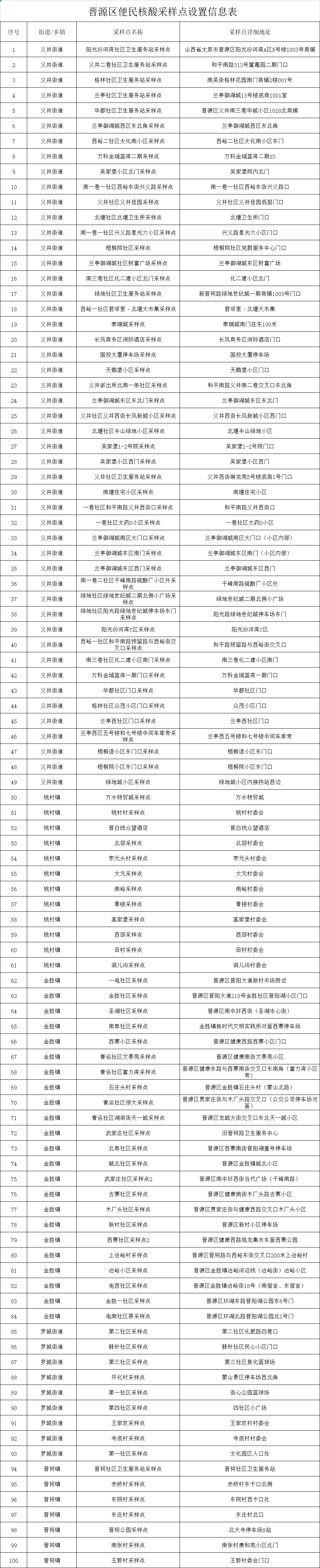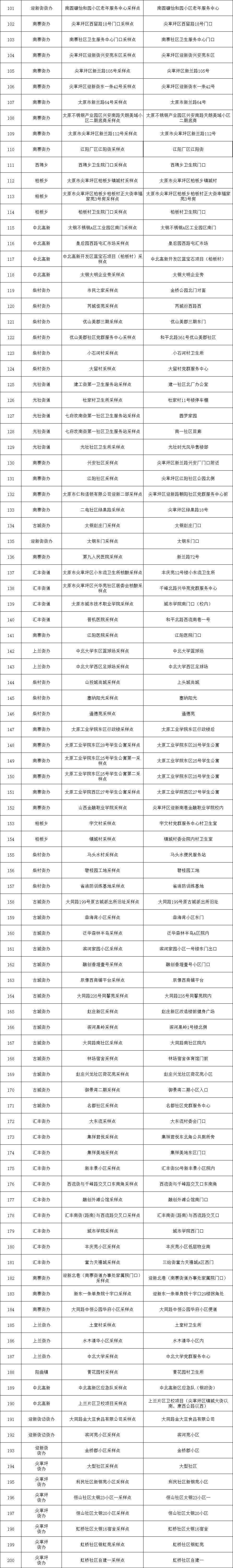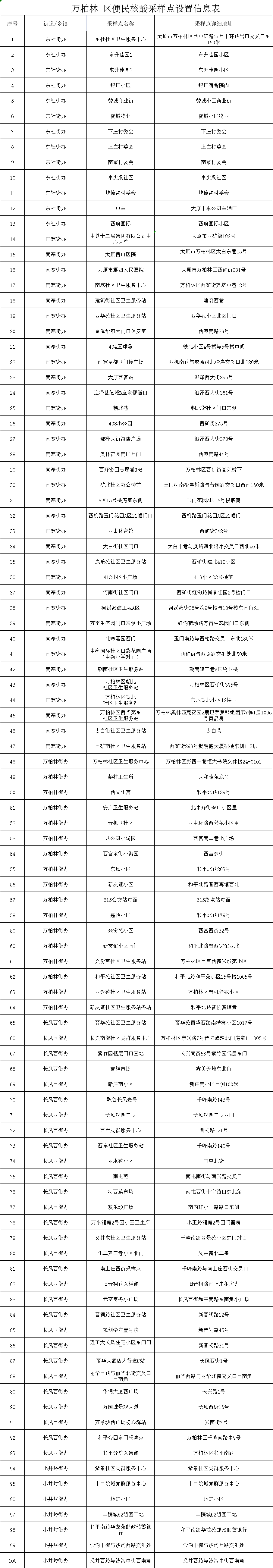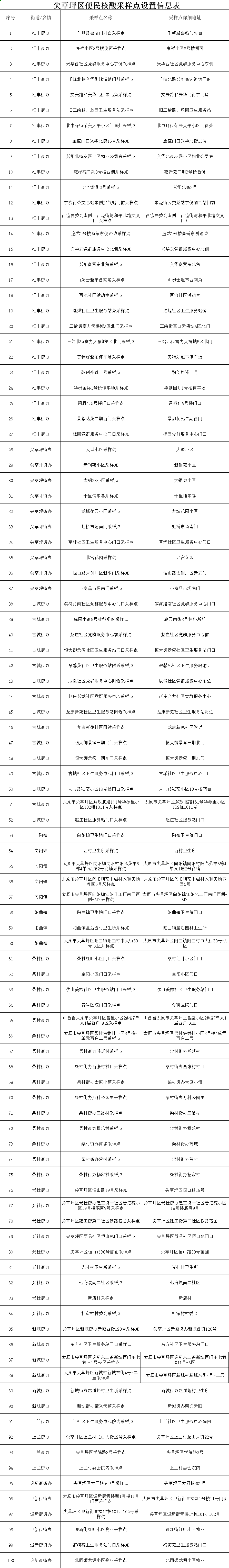 附:太原六城區(qū)便民核酸采樣點(diǎn)位
