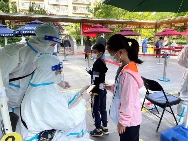 “讓我去封控區(qū),我年輕,身體好!”4月26日,紅廟北里小區(qū)部分區(qū)域?qū)嵤┓猓ü埽┛?,朝陽區(qū)八里莊街道社區(qū)衛(wèi)生服務(wù)中心護(hù)士劉彩麗主動請纓,就這樣,22歲的劉彩麗和其他4名同事承擔(dān)起5個單元門的核酸采樣任務(wù)。