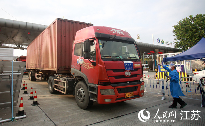 貨車(chē)有序通過(guò)揚(yáng)州卡口。人民網(wǎng) 張玉峰攝