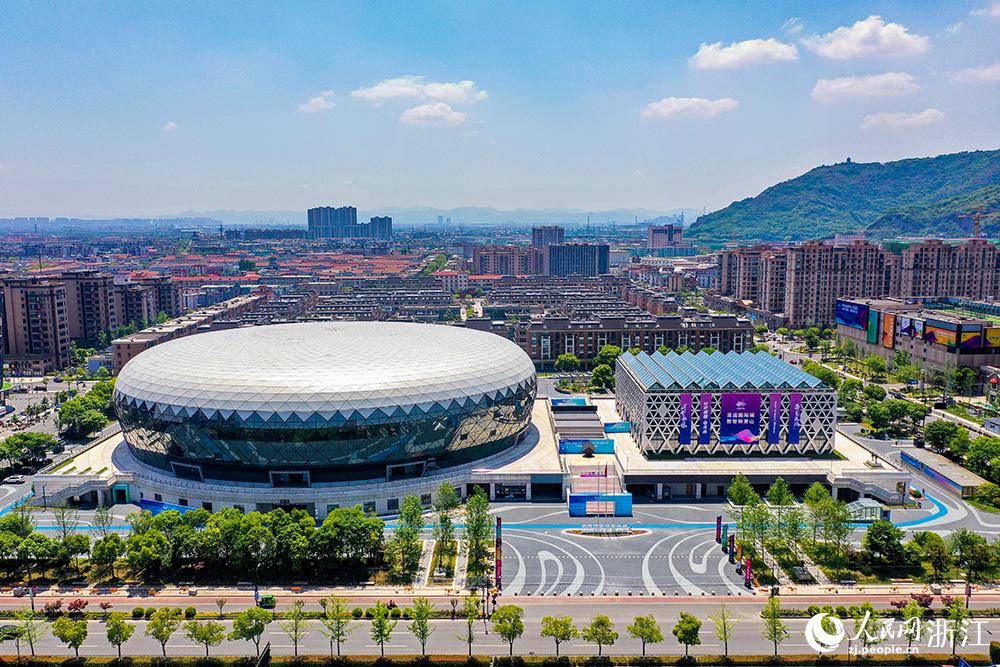 航拍蕭山區(qū)瓜瀝文體中心。人民網 章勇濤攝