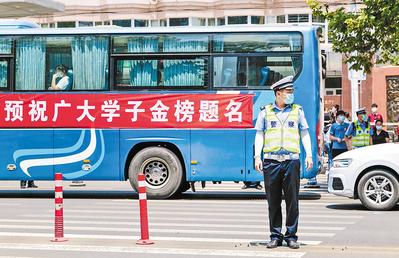“為保證高考考生順利安全抵達考點,考試期間,我們在考點附近安排部署執(zhí)勤警力,并根據(jù)考試時間提前一個半小時到崗到位?!痹谑仪f市第六中學(xué)考點執(zhí)勤的交警告訴記者,考點位于主干路,周邊商超、單位較多,容易出現(xiàn)擁堵,為方便考生,交警根據(jù)車流量情況,對社會車輛采取間斷放行等措施進行有效分流,避免考點門前路段出現(xiàn)擁堵。