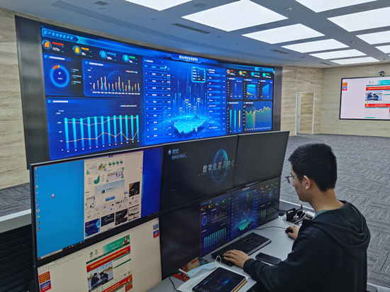 國網(wǎng)冀北電力工作人員對唐山供電公司小微企業(yè)信用評價情況進行可視化展示。王暢攝