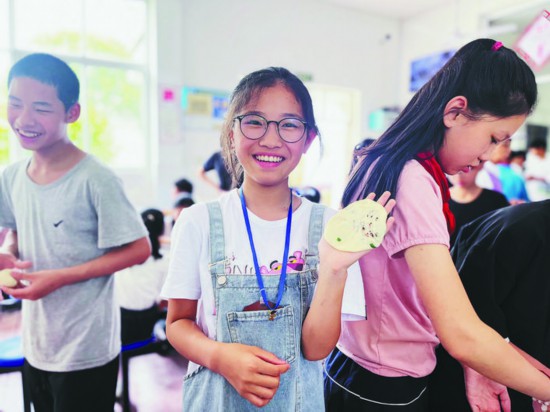 為什么會讓學(xué)生學(xué)做燒餅?zāi)兀啃iL王國寶這樣解釋:“縉云燒餅的制作技藝是國家級非物質(zhì)文化遺產(chǎn),讓學(xué)生傳承這項技藝,也能讓他們感受縉云人記憶深處的味道。六年級的同學(xué)即將畢業(yè),以后他們會離開縉云展翅高飛,真心希望他們能記住縉云燒餅這個回家的路標。”