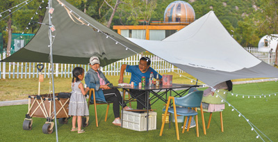 “三五好友結(jié)伴而行,喝茶賞景,好不愜意?!背虝哉f,“現(xiàn)在市場(chǎng)上有很多比較成熟的露營(yíng)產(chǎn)品可選擇,有的只提供帳篷等設(shè)備,需要自備餐食,有的是全包,吃住游所需都準(zhǔn)備好了,還有些個(gè)性化的產(chǎn)品會(huì)提供桌游、羽毛球等休閑項(xiàng)目?!痹隗w驗(yàn)過幾次露營(yíng)后,程曉正打算帶上父母一起戶外郊游。
