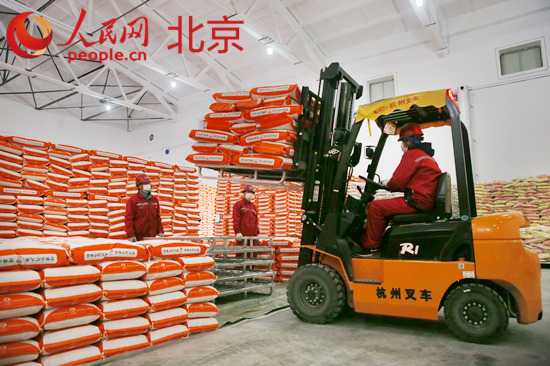 首農(nóng)食品吉林大米入庫保供首都市場。 首農(nóng)食品集團供圖